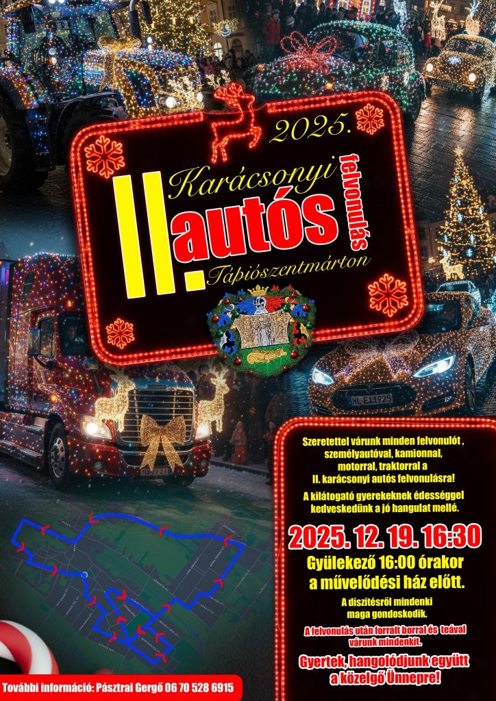 2025. december 19-én, pénteken 16:30-tól karácsonyi fényekkel kivilágított autókkal, kamionokkal és traktorokkal tesszük szebbé az ünnepet!